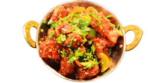 Fried vegetables balls coated in spicy, sweet and tangy sauce